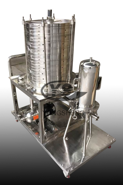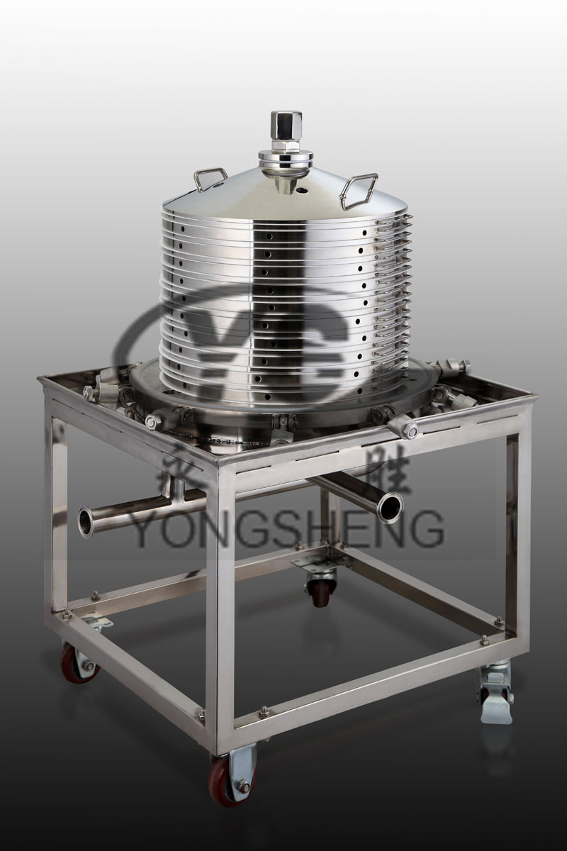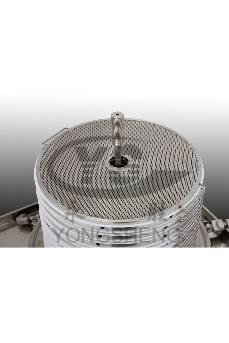 本機(jī)過濾裝置是由多層重疊過濾網(wǎng)板和框組成,原液體經(jīng)過加壓進(jìn)入桶體內(nèi),從框外邊孔進(jìn)入再經(jīng)網(wǎng)板上的過濾介質(zhì),從網(wǎng)板中心多個(gè)小孔出來,合格液體排出口。濾材可選用增強(qiáng)型濾膜、濾紙、濾布、不銹鋼篩網(wǎng)、尼龍篩網(wǎng)、本機(jī)專用濾膜等,可根據(jù)用戶選用合格的耗材。